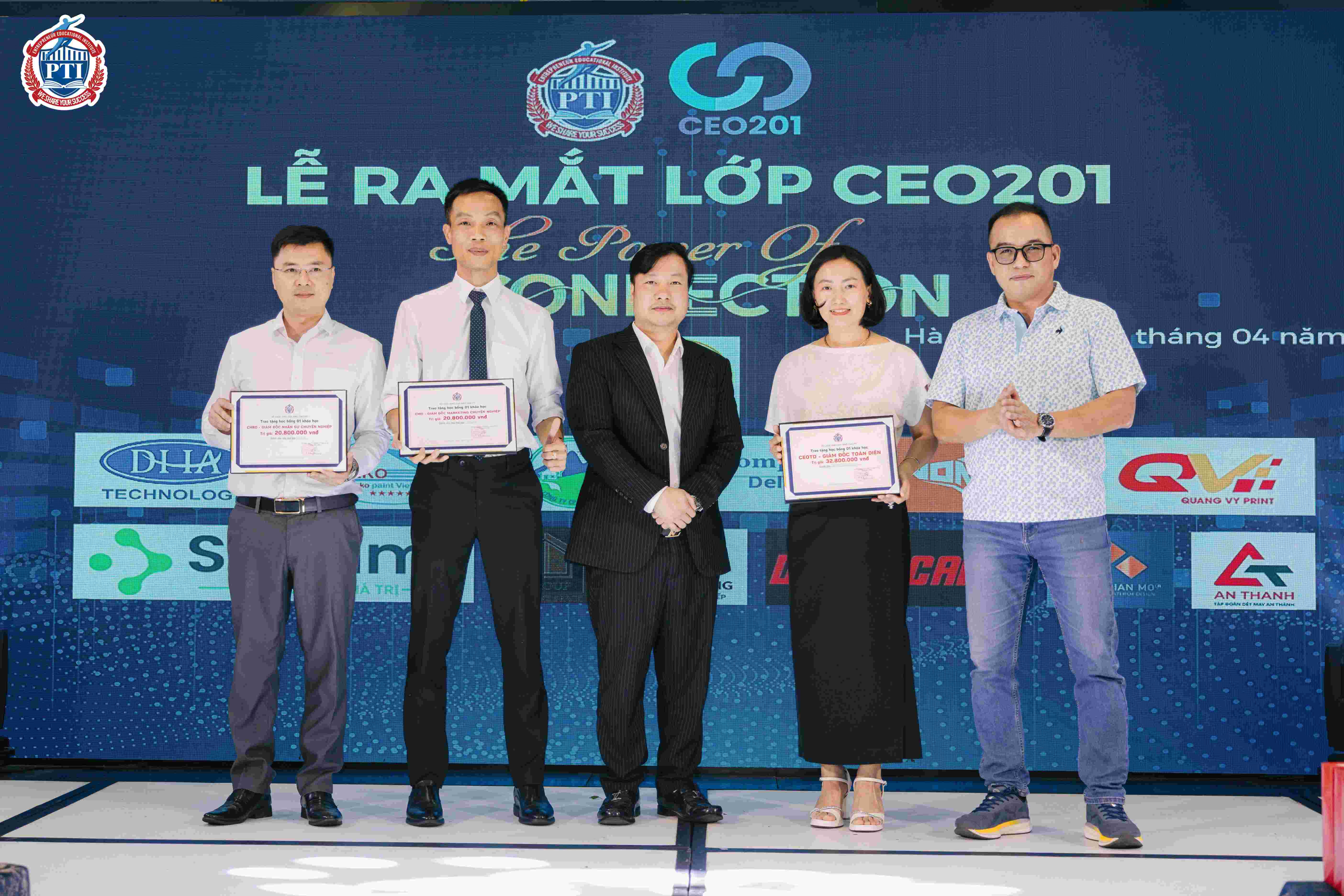 Trong khuôn khổ chương trình, PTI đã trao tặng học bổng đến tập thể lớp CEO 201, gồm 03 khóa học: