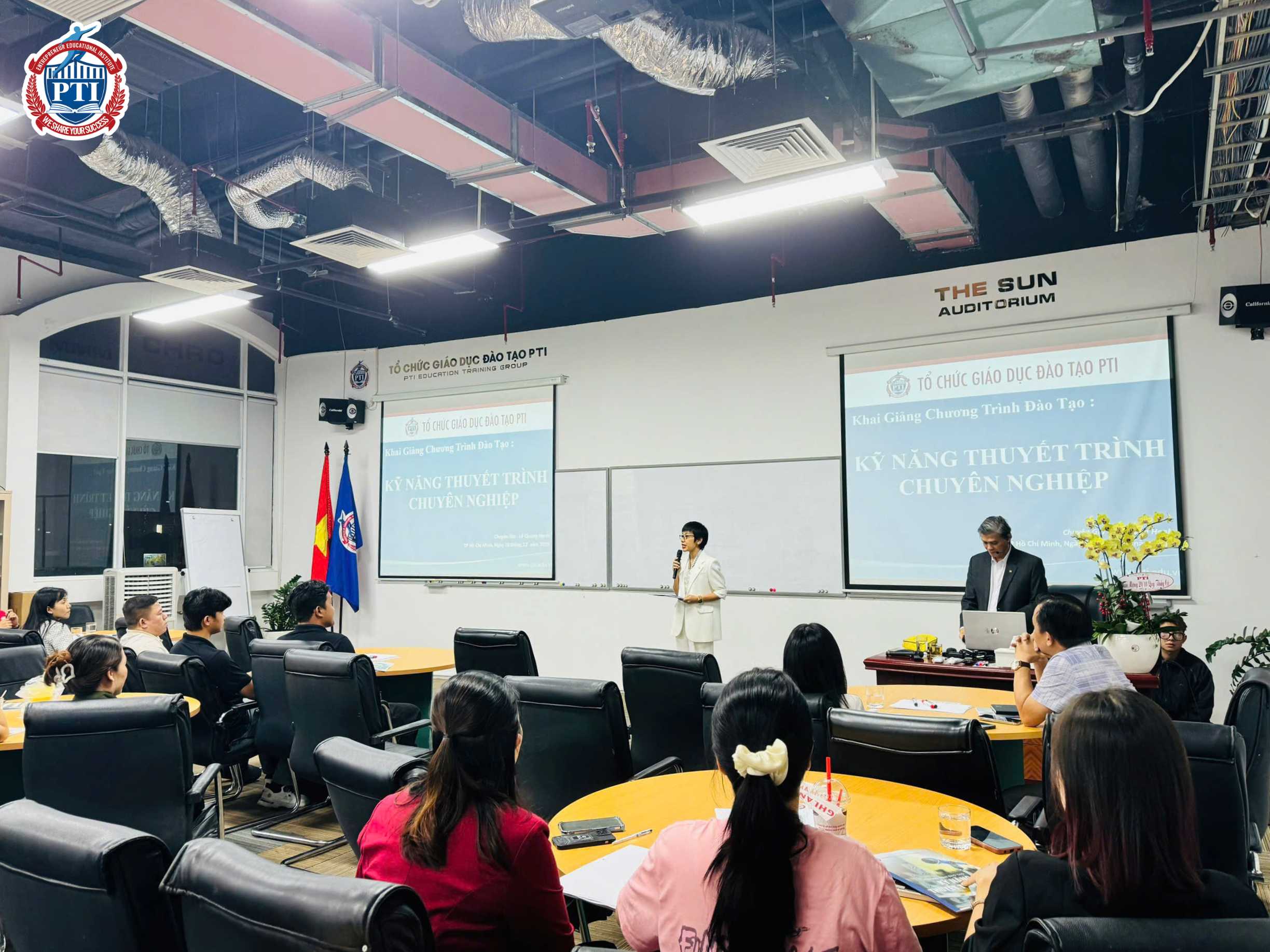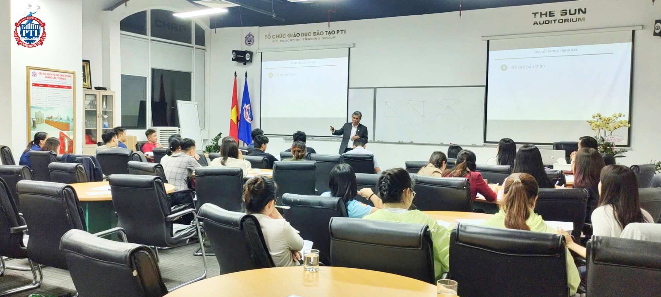 Ngày 10/12/2025, tại phòng học The Sun, PTI tổ chức khai giảng khóa học “Kỹ năng thuyết trình chuyên nghiệp” K38 dưới sự dẫn dắt của chuyên gia Lê Quang Hạnh. Khóa học quy tụ các học viên đến từ nhiều lĩnh vực khác nhau với mong muốn hoàn thiện kỹ năng trình bày, giao tiếp và truyền đạt ý tưởng trong môi trường làm việc hiện đại.